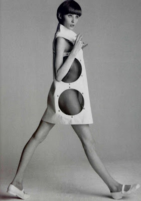 In The mid sixties the space age look really came into fashion with the designs of Andre Courreges. He used materials such as plastic and metal and made clothes into geometrical shapes. The colors he used were mostly metallic, whites, and reds. Boots and goggles were also part of the space age look. Pierre Cardin was another space age designer. His clothes included catsuits, cut-out dresses and the material was metal and plastic. Pierre Cardin was also the designer of the Beatles trademark collarless jackets. The Space Age era was not just in fashion but was also in furniture, architecture and home decor.